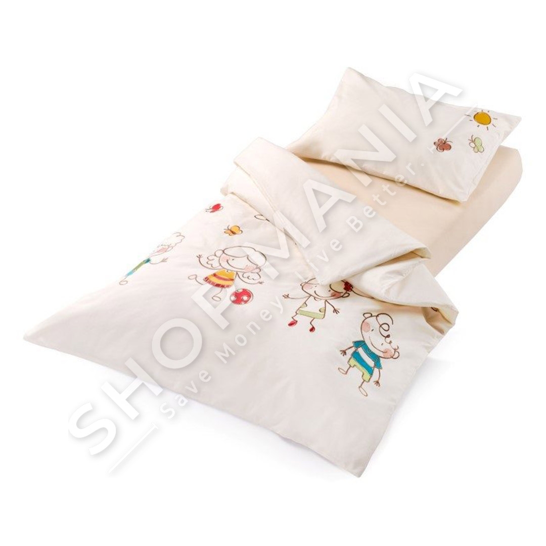 Set krevati per femije ne material pambuku cilesore, dizenjuar per lekuren e ndjeshme te femijeve.