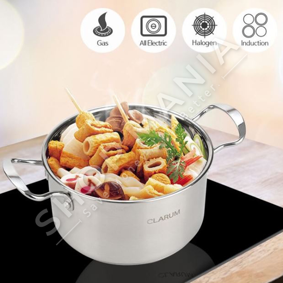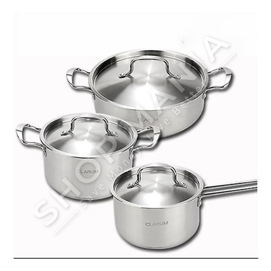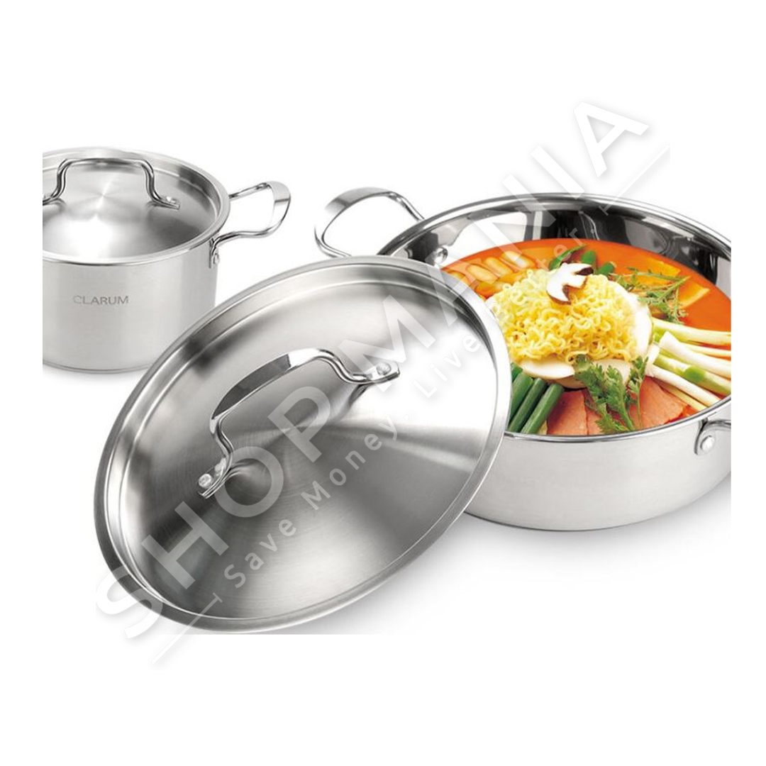 Seti i tenxhereve te kuzhines nga marka luksoze gjermane Clarum. Me material prej celik inoksi me rezistente te shkelqyer ndaj korrozionit. Baza e tenxhereve me shtrese te trefishte, e cila perhap nxehtesine shume shpejt dhe te njetrajtshme. Me kapake qelqi, shume rezistent ndaj goditjeve.