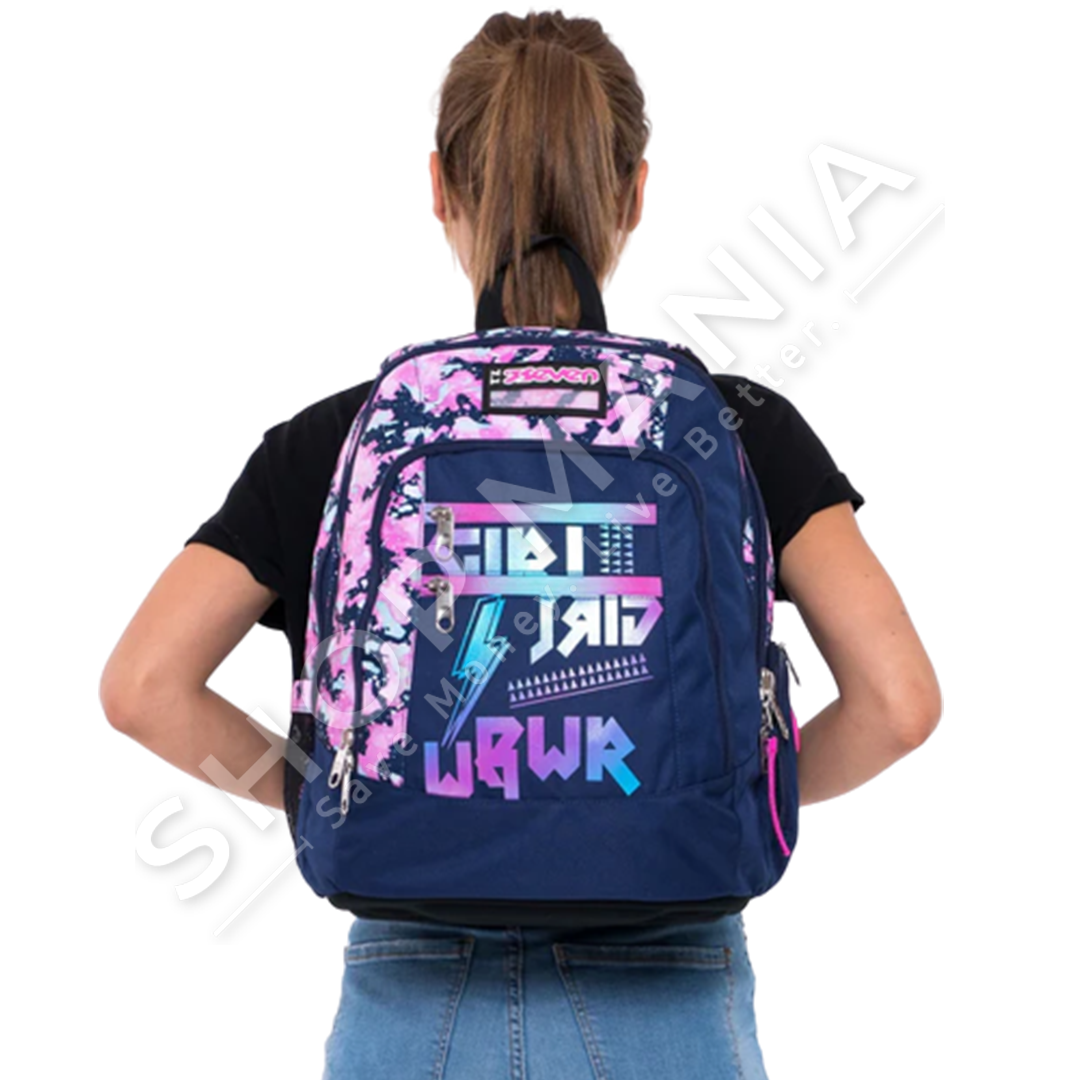 Ne ndarjen e saj te dyfishte mund te vendosni gjithcka qe ju nevojitet per shkollen, si: libra, fletore, portofol, shishe uji etj.