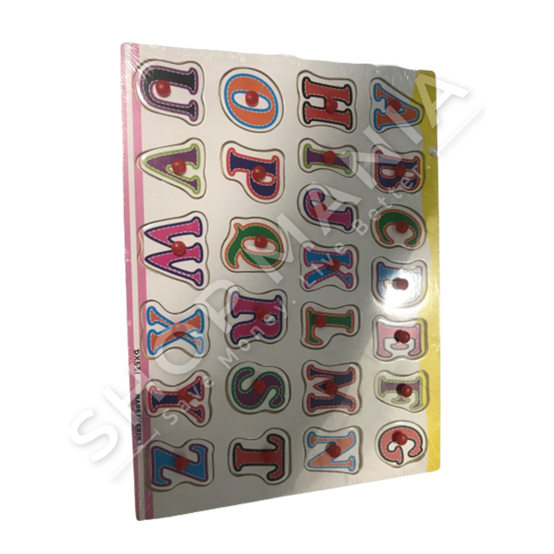 Paketimi permban 28 shkronjat e medha te alfabetit anglez se bashku me nga nje pineske. I ndihmon femijet te argetohen me shume ne mesimin e alfabetit, formes, emrit te kafsheve, numrave dhe ngjyrave me enigmen e alfabetit. Shkronjat vijne ne ngjyra te ndryshme.
