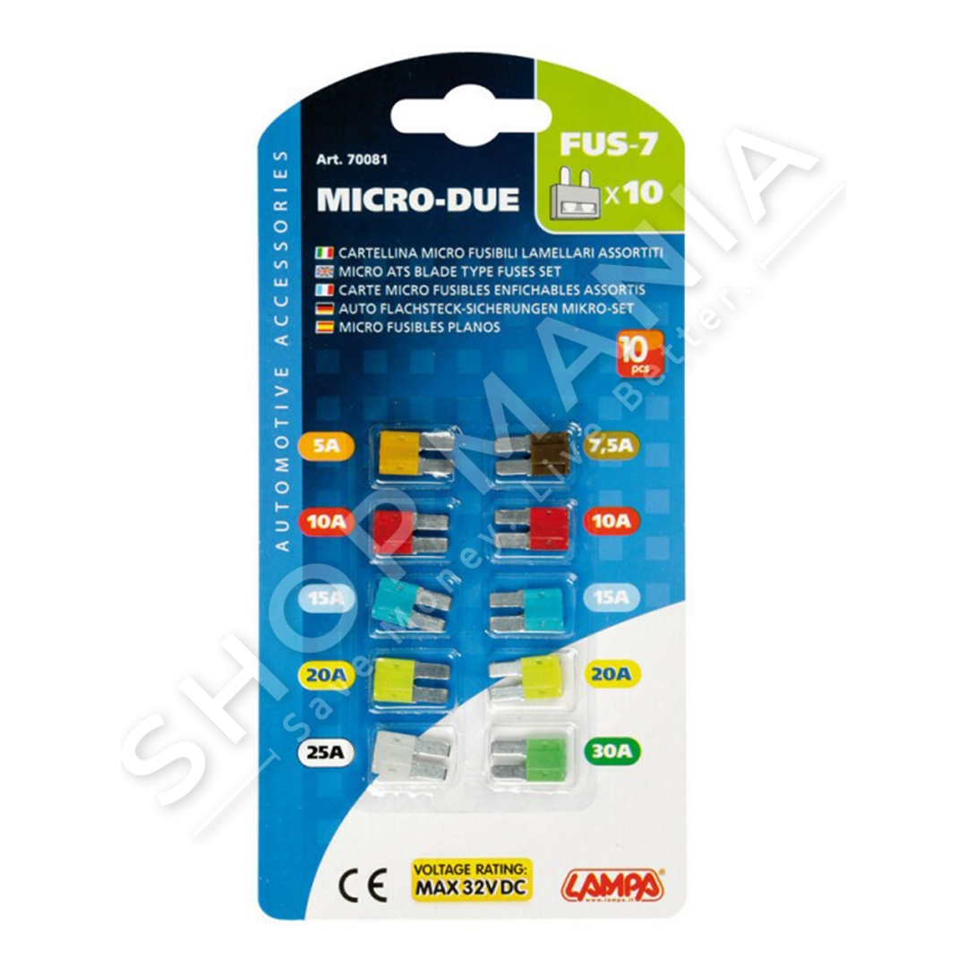 Ne paketim perfshihen 10 siguresa me amperazhe si me poshte: 5A, 7.5A, 10A, 10A, 15A, 15A, 20A, 20A, 25A, 30A.