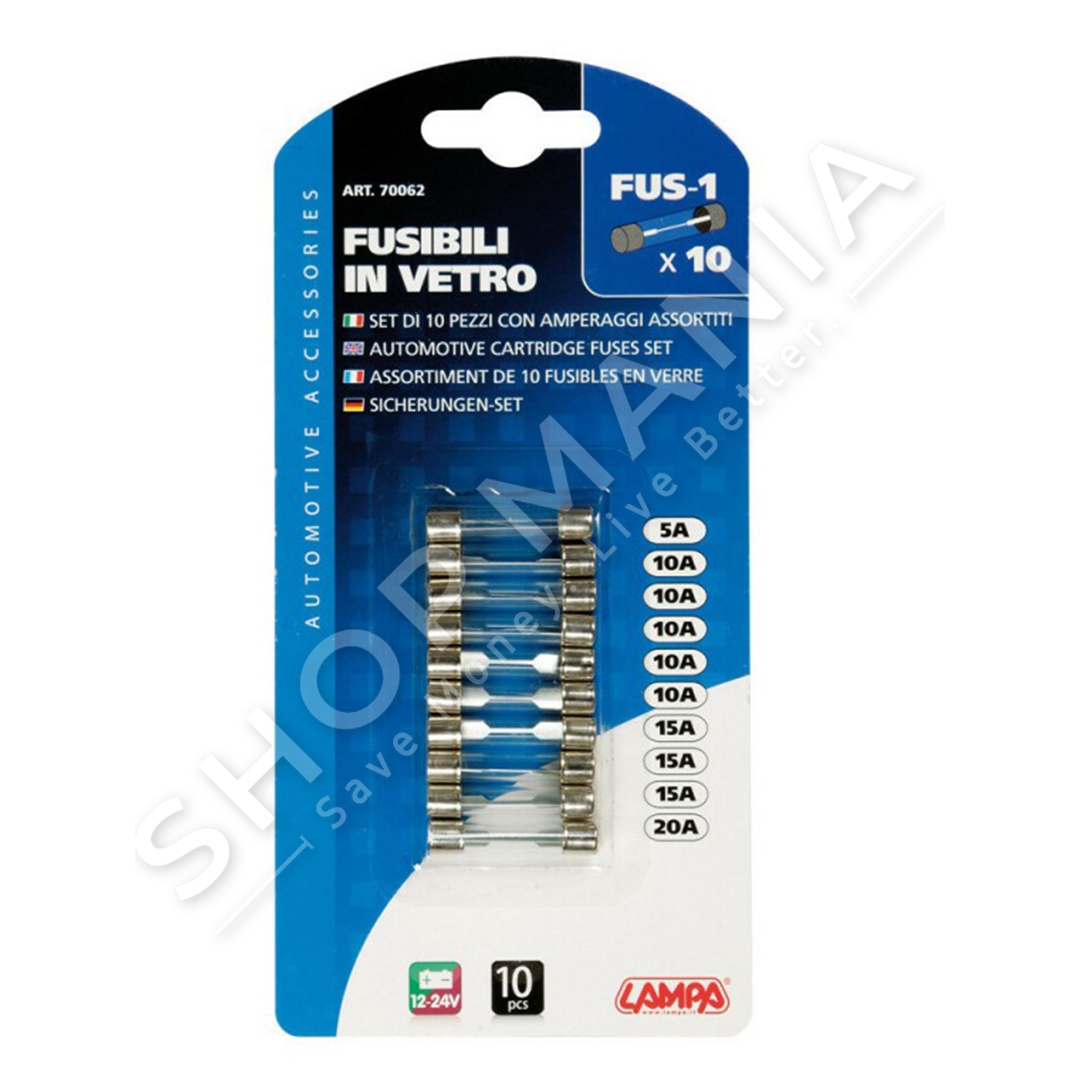 Ne paketim perfshihen 10 siguresa me amperazhe si me poshte: 5A, 10A, 10A, 10A, 10A, 10A, 15A, 15A, 15A, 20A