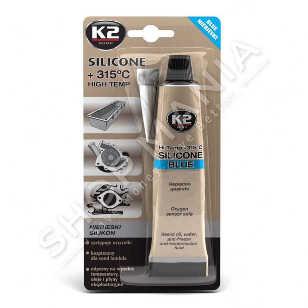 Silikon K2 ne ngjyre blu me cilesi te larte. Pershtatet ne menyre te persosur ne siperfaqet e izoluara. Rezistent ne temperature te larte deri ne 315°C. Zevendeson guarnicionet tradicionale: tapa, leter, shajak, asbest dhe gome. Fale formules “SENSOR SAFE”, eshte i sigurt per sensoret e oksigjenit te perdorur ne makinat moderne me injeksion elektronik te karburantit. Rezistent ndaj vajrave, yndyrnave, ftohesve etj.