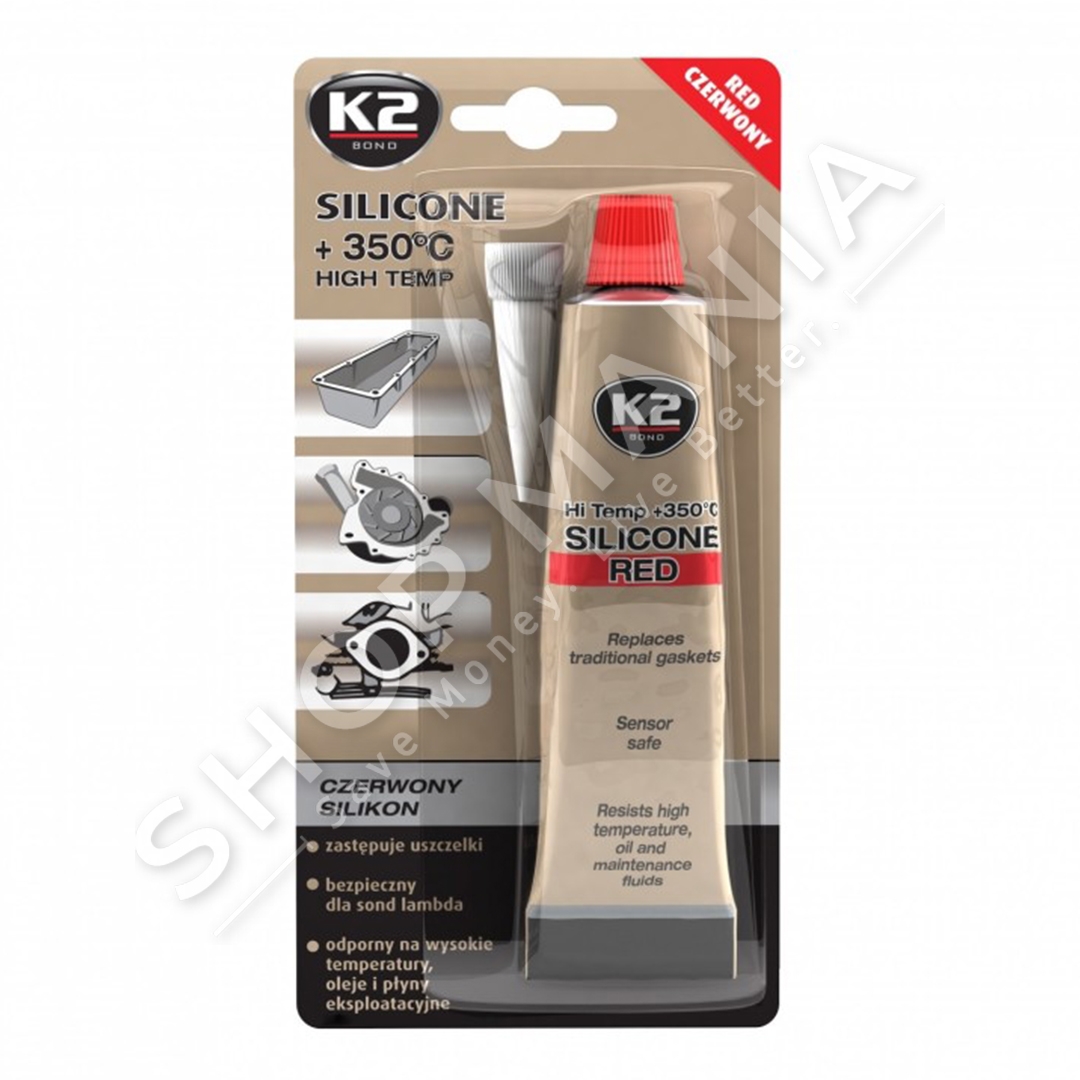 Silikon K2 ne ngjyre te kuqe me cilesi te larte. Pershtatet ne menyre te persosur ne siperfaqet e izoluara. Rezistent ne temperature te larte deri ne 350°C. Zevendeson guarnicionet tradicionale: tapa, leter, shajak, asbest dhe gome. Fale formules “SENSOR SAFE”, eshte i sigurt per sensoret e oksigjenit te perdorur ne makinat moderne me injeksion elektronik te karburantit. Rezistent ndaj vajrave, yndyrnave, ftohesve etj.