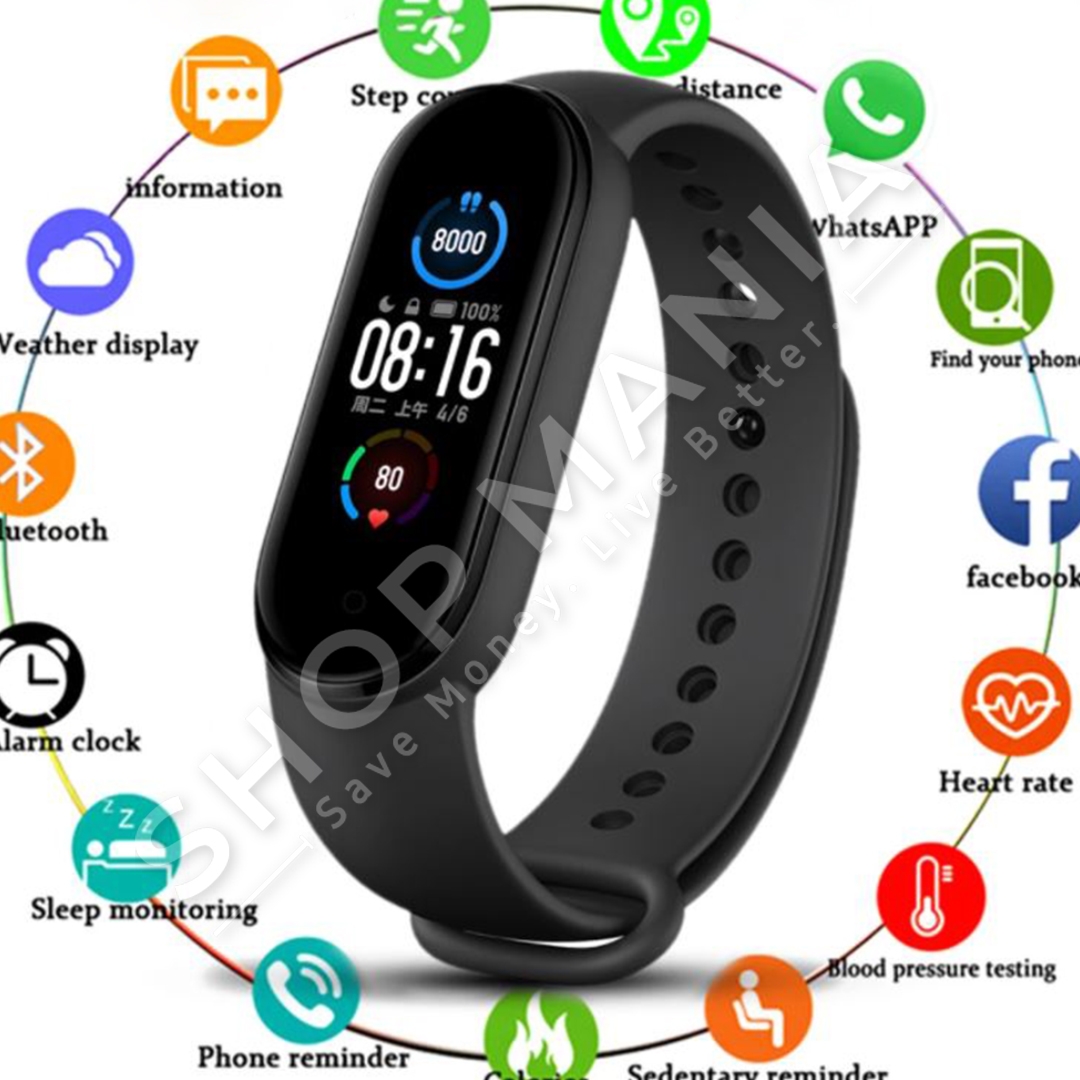 Smart Watch Bracalet M5,sherben si nje byrzylyk inteligjent dore qe monitoron te gjithe aktivitetin tuaj ditor. Shume e lehte per tu hequr dhe instaluar. Gjurmon dhe sinkronizon me saktesi hapar dhe distancen, kalorite e djegura dhe aktivitetin fizik.