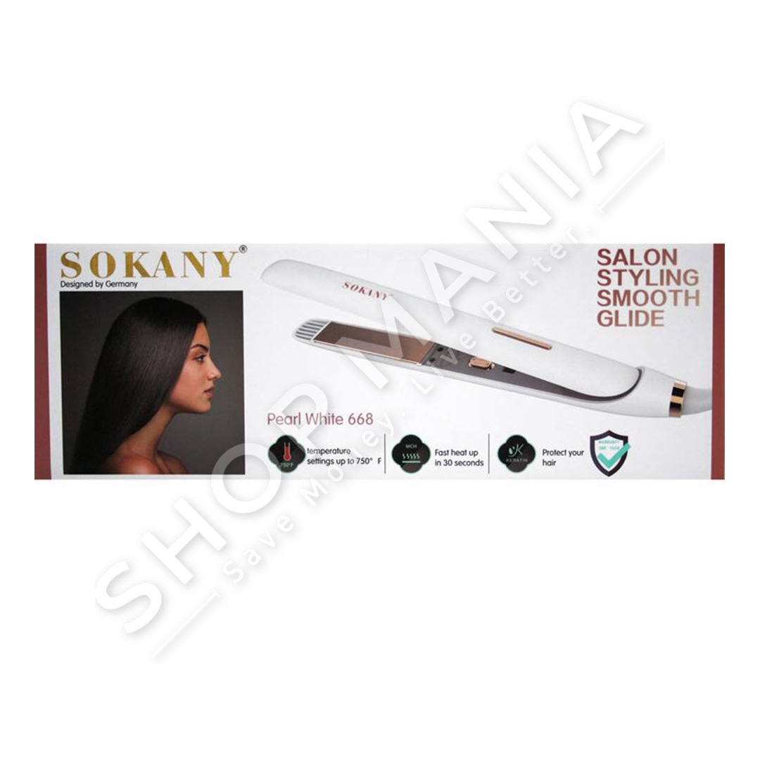 Pjaster flokesh Sokany Pearl White 668 me nje dizajn elegant dhe te kendshem, ju ofron floke te bute, te drejte dhe jo te demtuar. Pllakat prej qeramike dhe teknologjia e ngrohjes PTC e mbron flokun nga tharja, i mban floket te bute dhe parandalon mbinxehjen. Eshte ideale per te gjithe llojet e flokeve dhe perdoret lehtesisht fale kabllit te gjate i cili rrotullohet 360 grade. Ngrohet lehtesisht ne 30 sekonda dhe ka temperature maksimale deri ne 400°C.