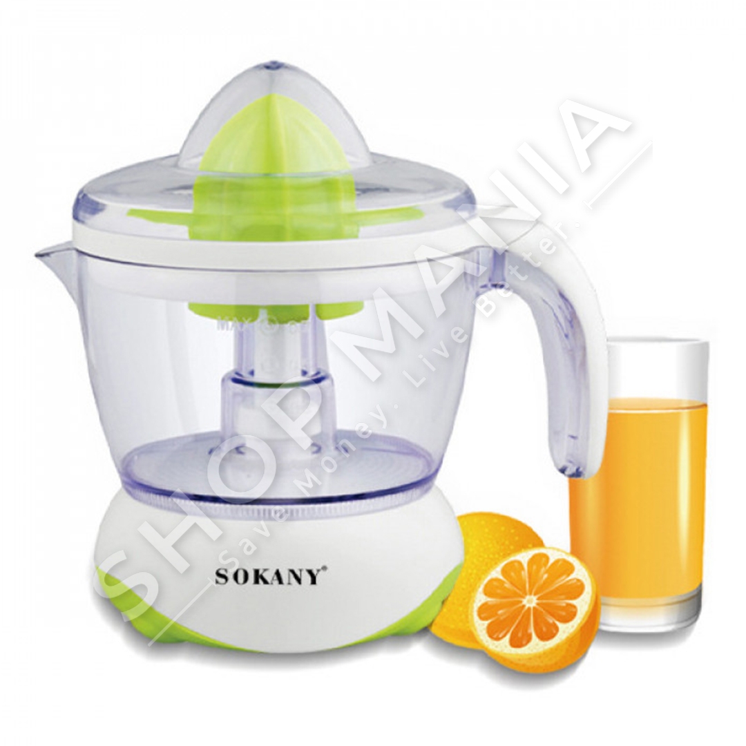 Shtrydhese elektrike agrumesh "Sokany Electric Citrus Juicer, 45 Watt, White and Green - WK-725" per te pergatitur leng te fresket frutash dhe agrumesh per te qene sa me energjik gjate gjithe dites.