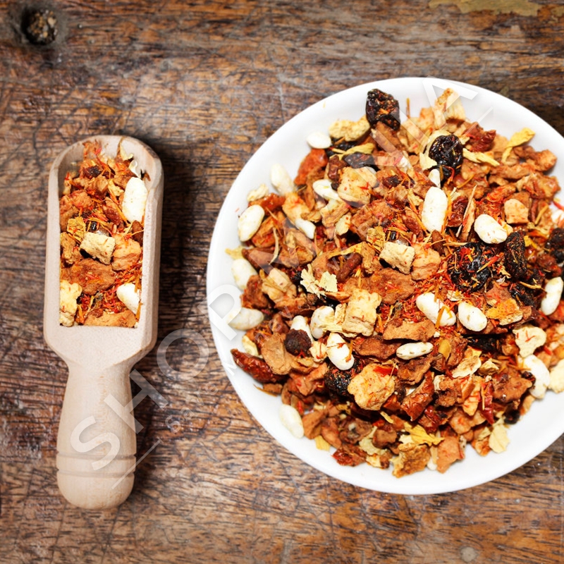 Caji i portokallit ka nje shije fantastike te embel kjo fale perzjerjes se shijes te tij me mollen dhe hibiscus.