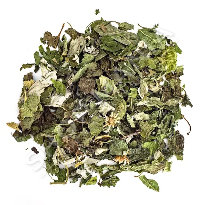 Bari i Bletres (Melissa Officinalis), gjethe boronice, lule Anisysop, gjethe nga bima e lajthise, hither, gjethe luleshtrydhe dhe lule Centaurea Cyanus .