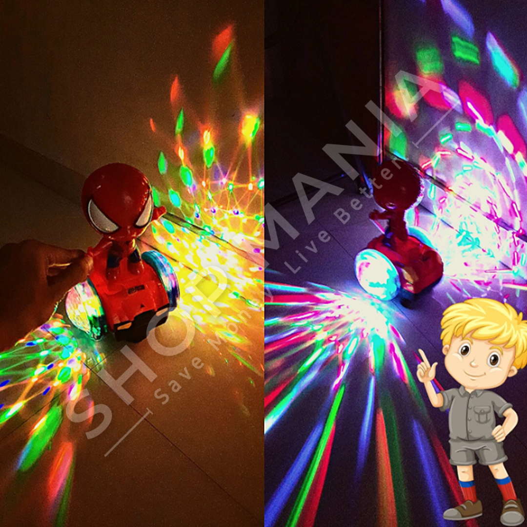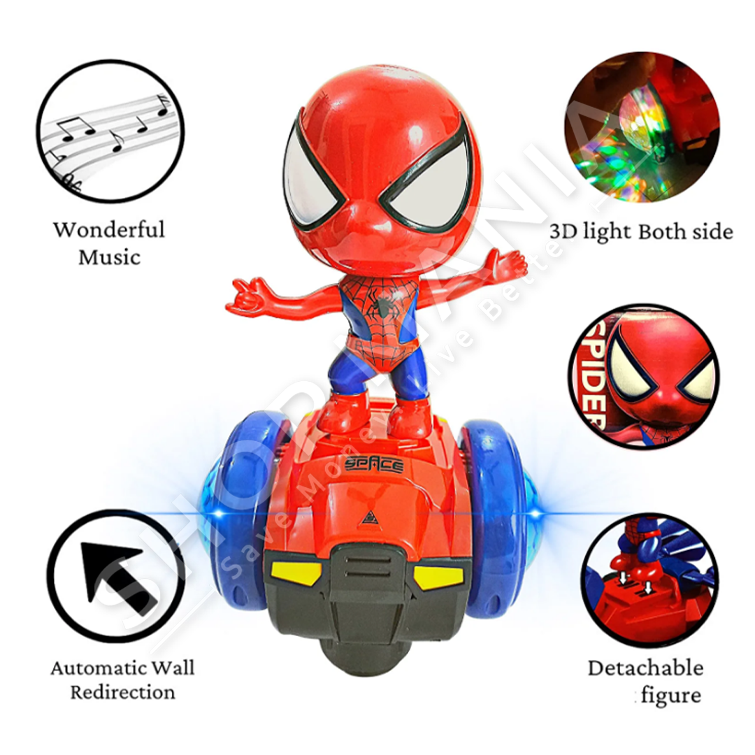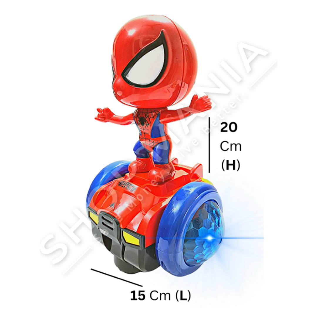 Përshkrimi:Spiderman personazhi me i preferuar per femijet, me baze rrotulluese.Ne material plastike organike ABS e cila nuk demton shendetin e femijes.Rrotullohet 360 gradeMe drita pulsuesePunon me 3 bateri AAMosha: +3 vjec