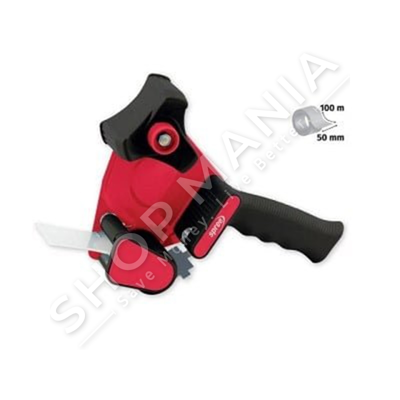 Mbajtese natribani me doreze me nje dizajn modern ne ngjyre te kuqe dhe te zeze. Me nje prerese metalike te fshehur e cila do te prese lehtesisht shiritat e skocit/natribanit. Me nje doreze gome ergonomike, lehtesisht e perdorshme. E pershtatshme per natriban me gjeresi 50 mm dhe gjatesi 100 m.