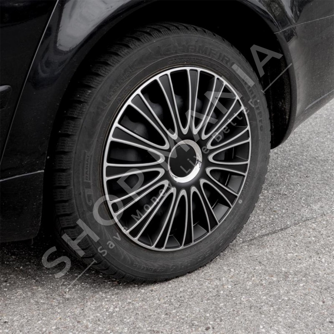 Tasa makine prej plastike ABS me rezistence te larte. Puthiten mire dhe sigurt fale sistemit te unazes metalike. Instalohen lehte dhe shpejte. Pershtaten me te gjitha disqet standarte prej celiku 15". Sigurojne ventilim te mire te sistemit te frenimit. Te rregullueshme ne dy drejtime dhe te pikturuar dy here. Kapeset mbajtese plastike parandalojne gervishtjen e buzes se makines gjate montimit. Ne paketim vijne 4 cope se bashku.