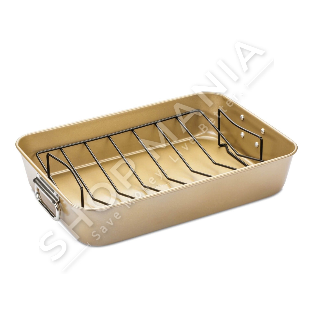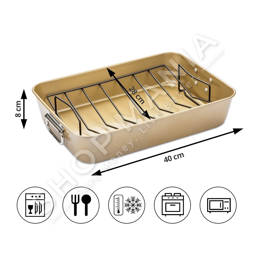 Tave Baker Gold me rrjete celiku te cilesise se larte, nje domoshmeri ne kuzhine. Fale rrjetes se celikut, mishi mund te ngrihet nga tava gjate pjekjes dhe e gjithe yndyra e tepert do te rrjedhe ne fund te taves.