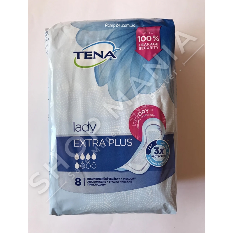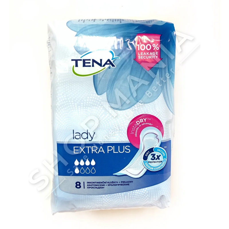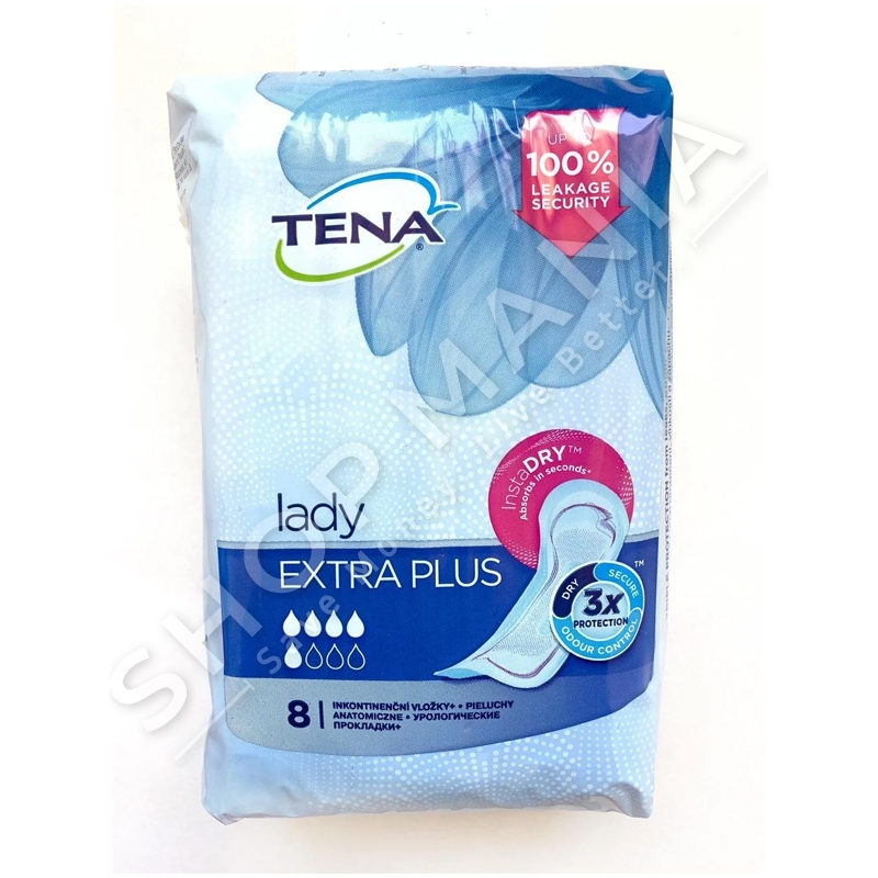 Tena Lady Extra Plus ofron mbrojtje te besueshme kunder rrjedhjeve, aromave te pakendshme dhe lageshtise.