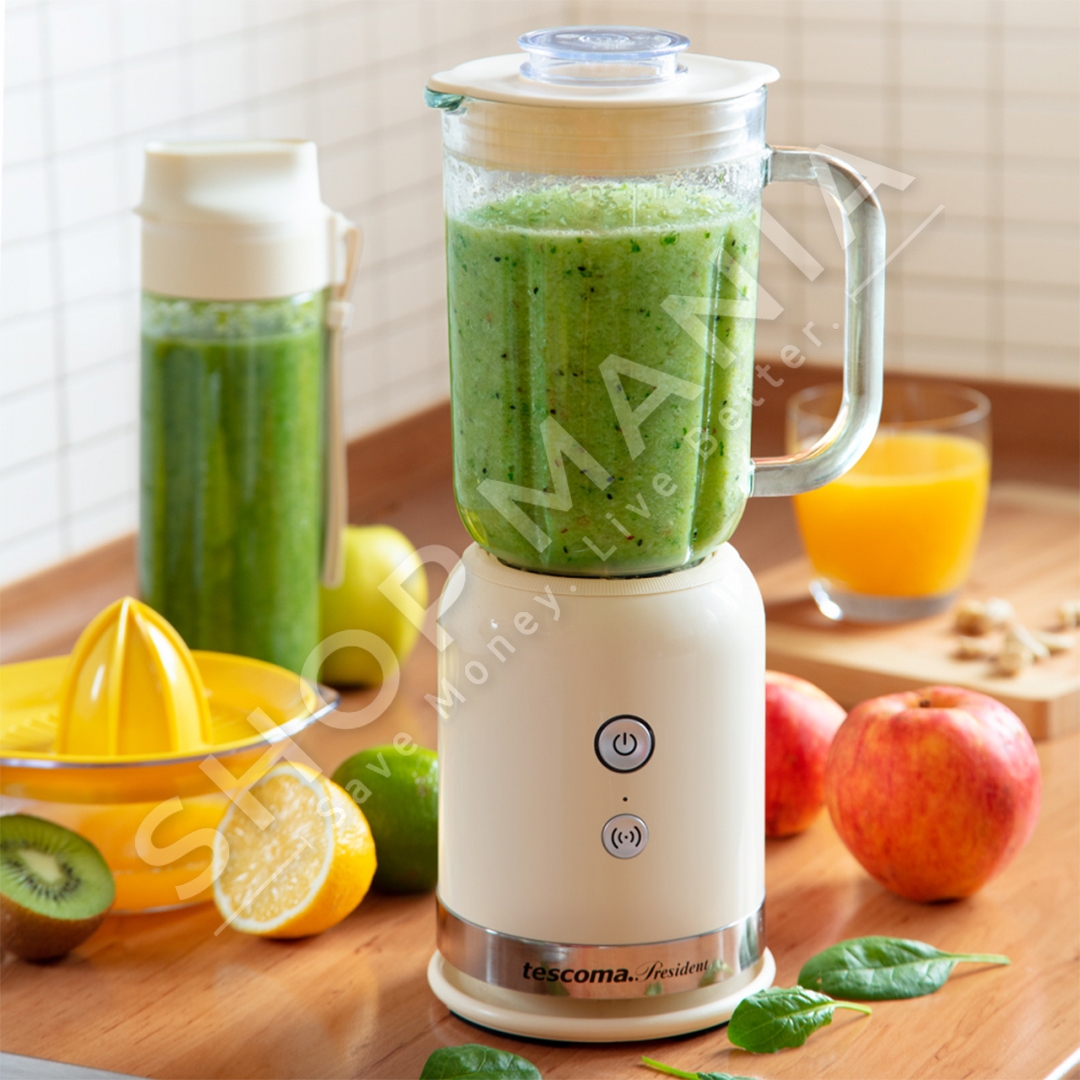 Blenderi "Tescoma Smoothie blender PRESIDENT" eshte perfekt per pergatitjen e smoothie frutash dhe perimesh, milkshakes dhe pure per femije