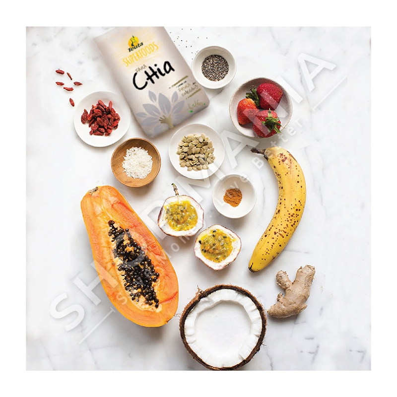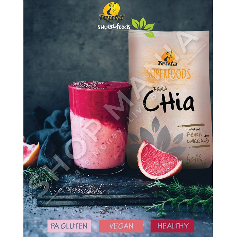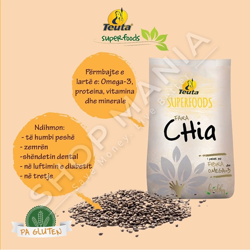 Chia eshte nje bime e pasur me acide yndyrore omega-3, proteina dhe fibra, dhe gjithashtu permban nje sasi te konsiderueshme te vitaminave,mineraleve dhe antioksidanteve.
