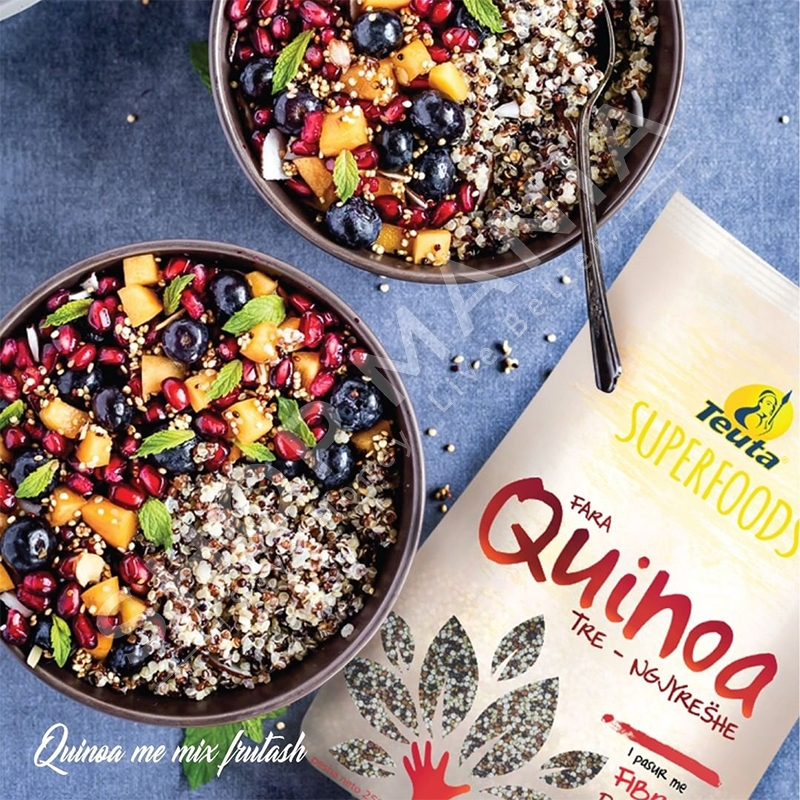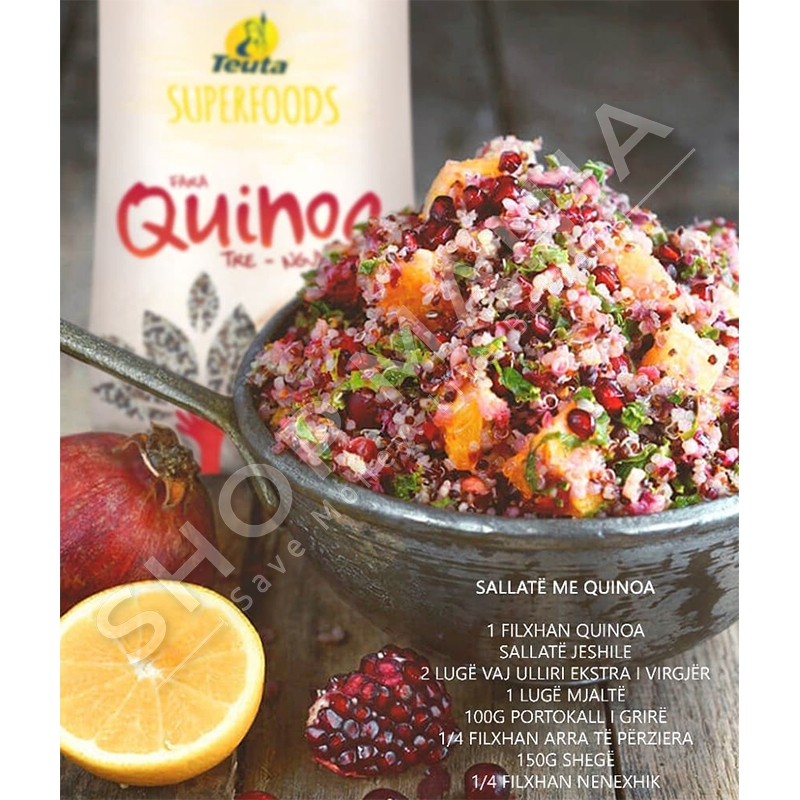 Quinoa permban 14 deri ne 18gr proteina dhe vlera shume te larta te vitamines B-kompleks,vitamines A dhe antioksidanteve qe sherbejne per te luftuar radikalet e lira ne trup.