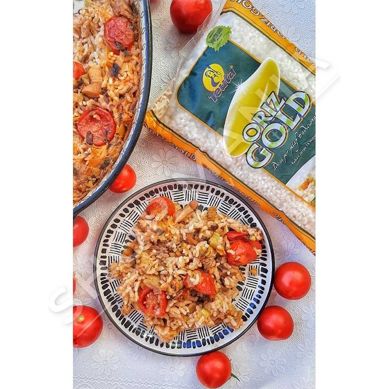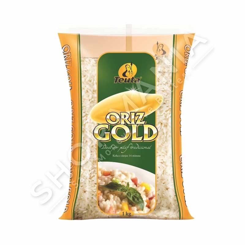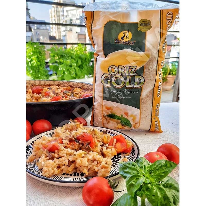 Orizi GOLD, kesaj here vjen me nje paketim te bukur jeshil dhe mund te perdoret per pasurimin e recetave te shijshme me perime ne furre, pilaf tradicional apo ushqimeve te tjera te shumellojshme.