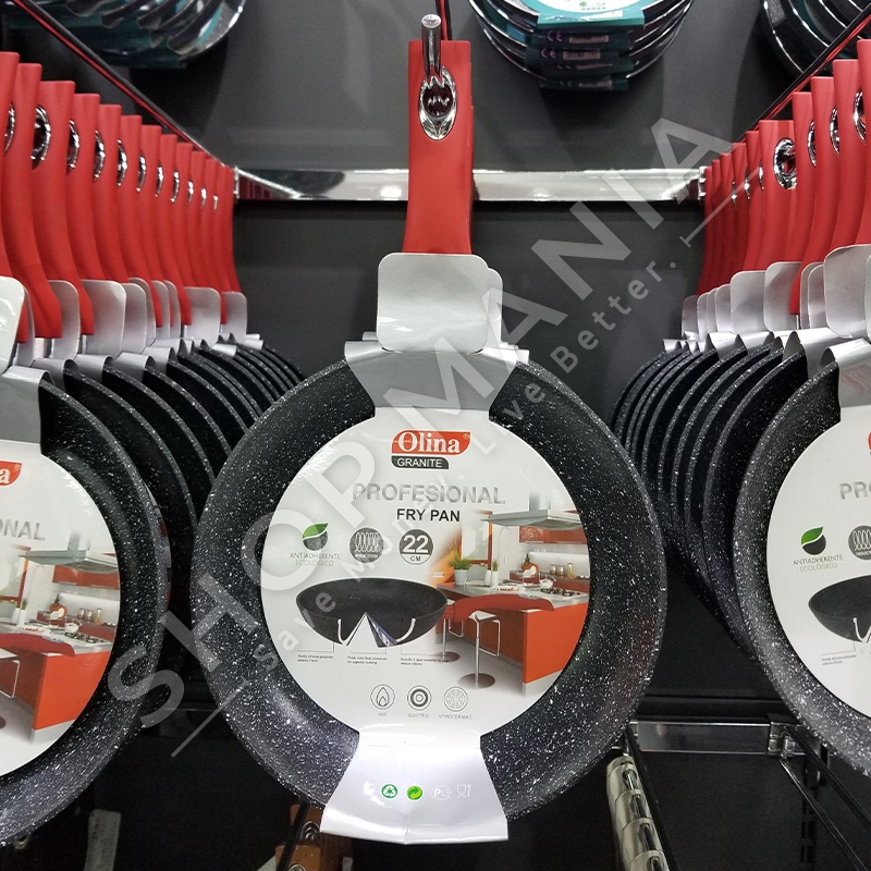 Tigan me veshje guri 22 cm dhe me doreze plastike rezistente ndaj nxehtesise.