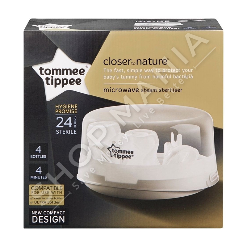 Tommee tippee ka menduar per ju zgjedhjen me te mire duke ju ofruar sterilizuesin me avull I cili ju jep mundesine qe te sterilizoni biberonet e femijes tuaj per me pak se 4 minuta.