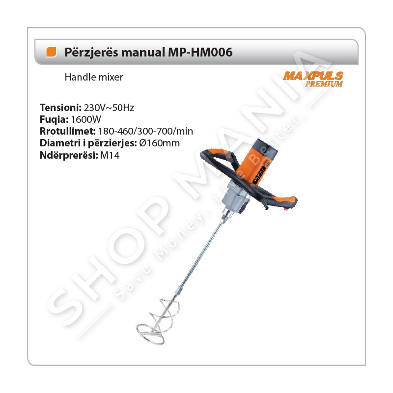 Perzjeres me motor 1600W dhe 700 rrotullime ne minute.I ndertuar nga dy doreza te cilat e bejne me komod te punuarin me te.Diametri i perzierjes 160mm.
