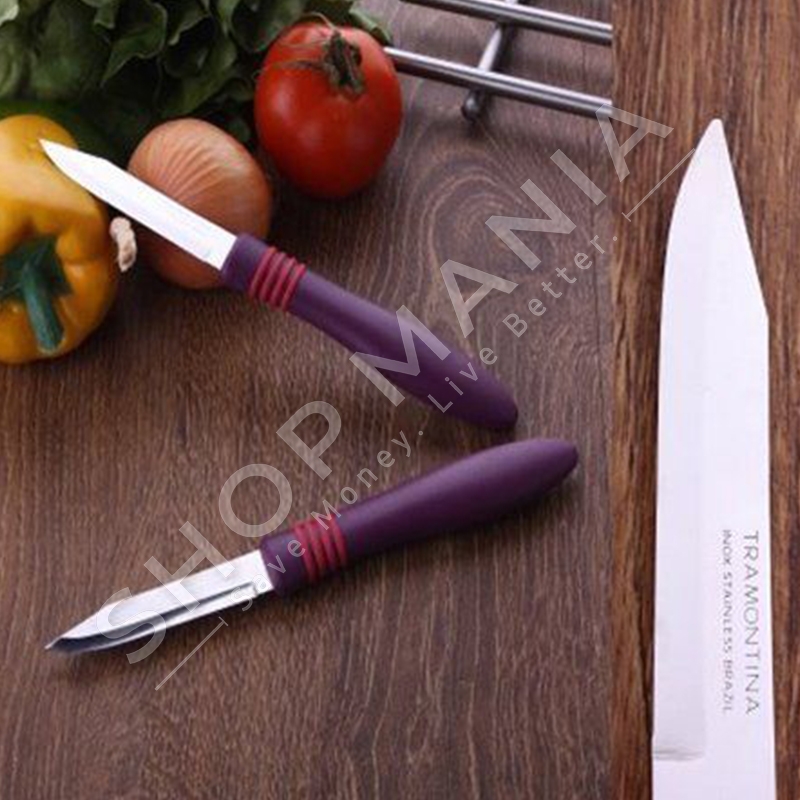 Zgjidhni setin me dy thika pa dhembezime, per perdorim te pergjithshem ne kuzhinen tuaj, ngjyre lejla nga Tramontina.