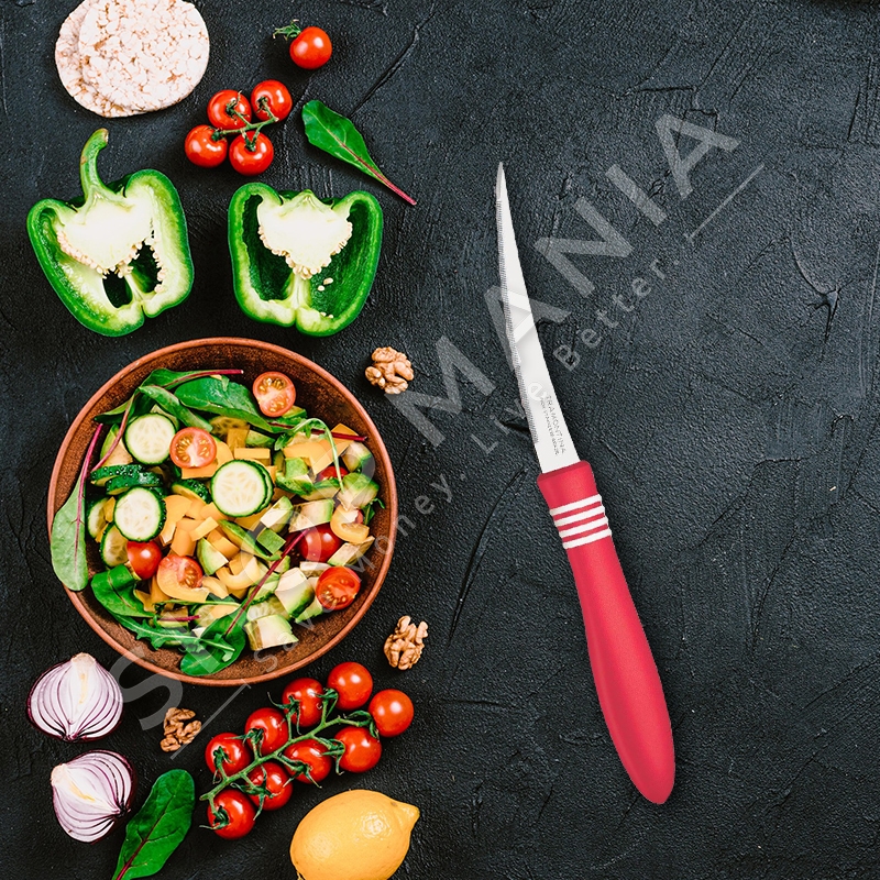 Zgjidhni setin me dy thika pa dhembezime, per te prere domatet, ngjyre te kuqe nga Tramontina.