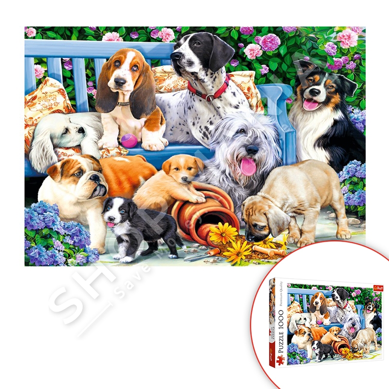Zhvilloni imagjinaten tuaj me ndertimin e puzzle 'Dogs in the garden'.Per te ndertuar kete imazh jane 1000 pjese.Materiali eshte karton i cilesise se larte.Ide ideale per dhurate.