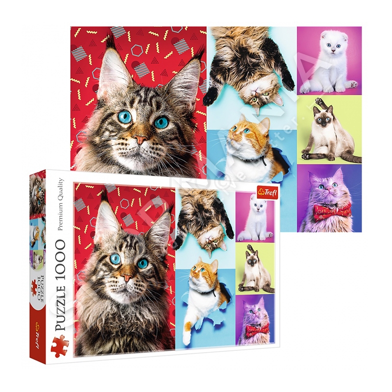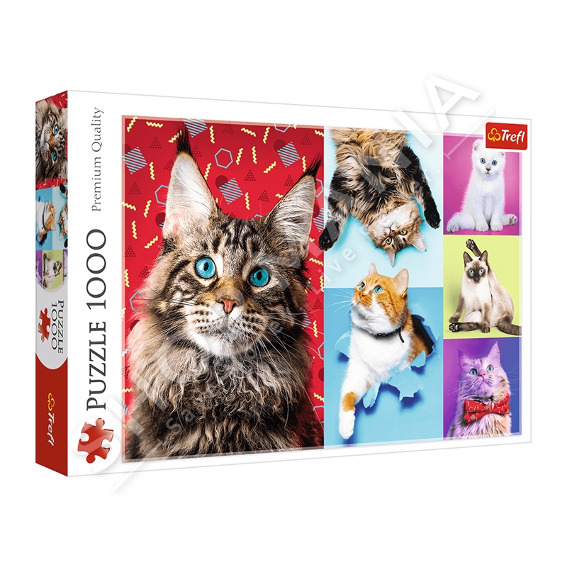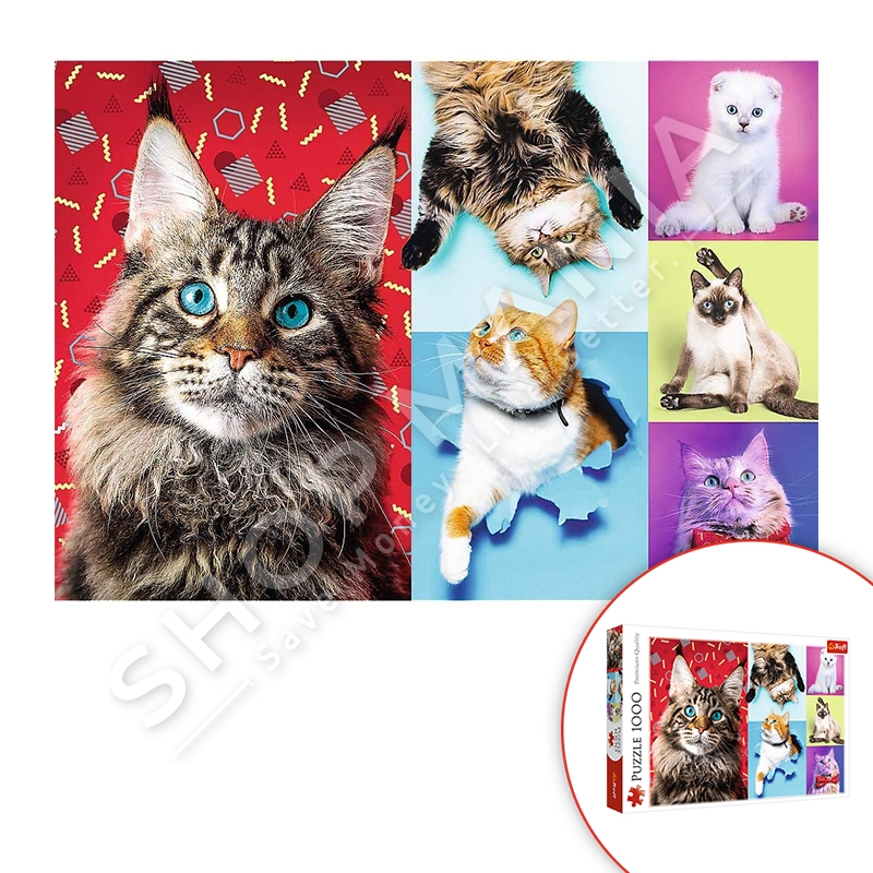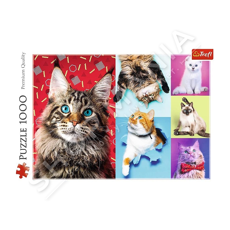 Jeni person qe i adhuroni macet.Trefl sjell per ju puzzle me imazhin 'Happy cats'.Per te formuar kete imaz jane 1000 pjese, te perbera nga material kartoni i cilesise se larte.Ide ideale per dhurate per personat qe i duan macet.