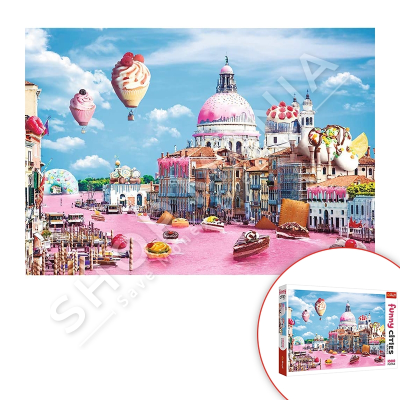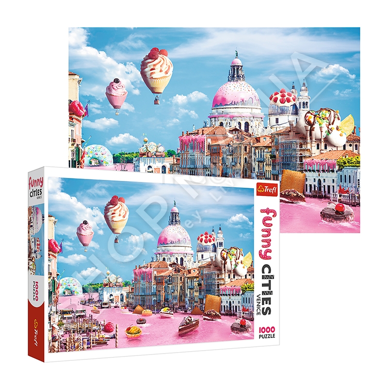 Zhvilloni imagjinaten tuaj sikur nje qytet eshte i bere me embelsira.Trefl ju ndihmon me puzzlen 'Sweets in Venice'.Per te ndertuar kete peisazh jane 1000 pjese te perbera nga material kartoni me cilesi te larte.Ide ideale per dhurate.