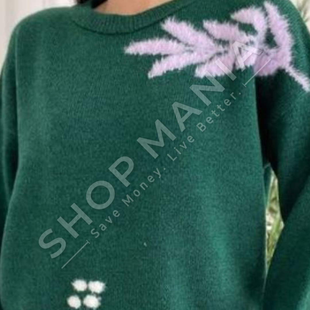 Ne ngjyre jeshile dhe me detajet e gjetheve ne ngjyre roze dhe te bardhe.