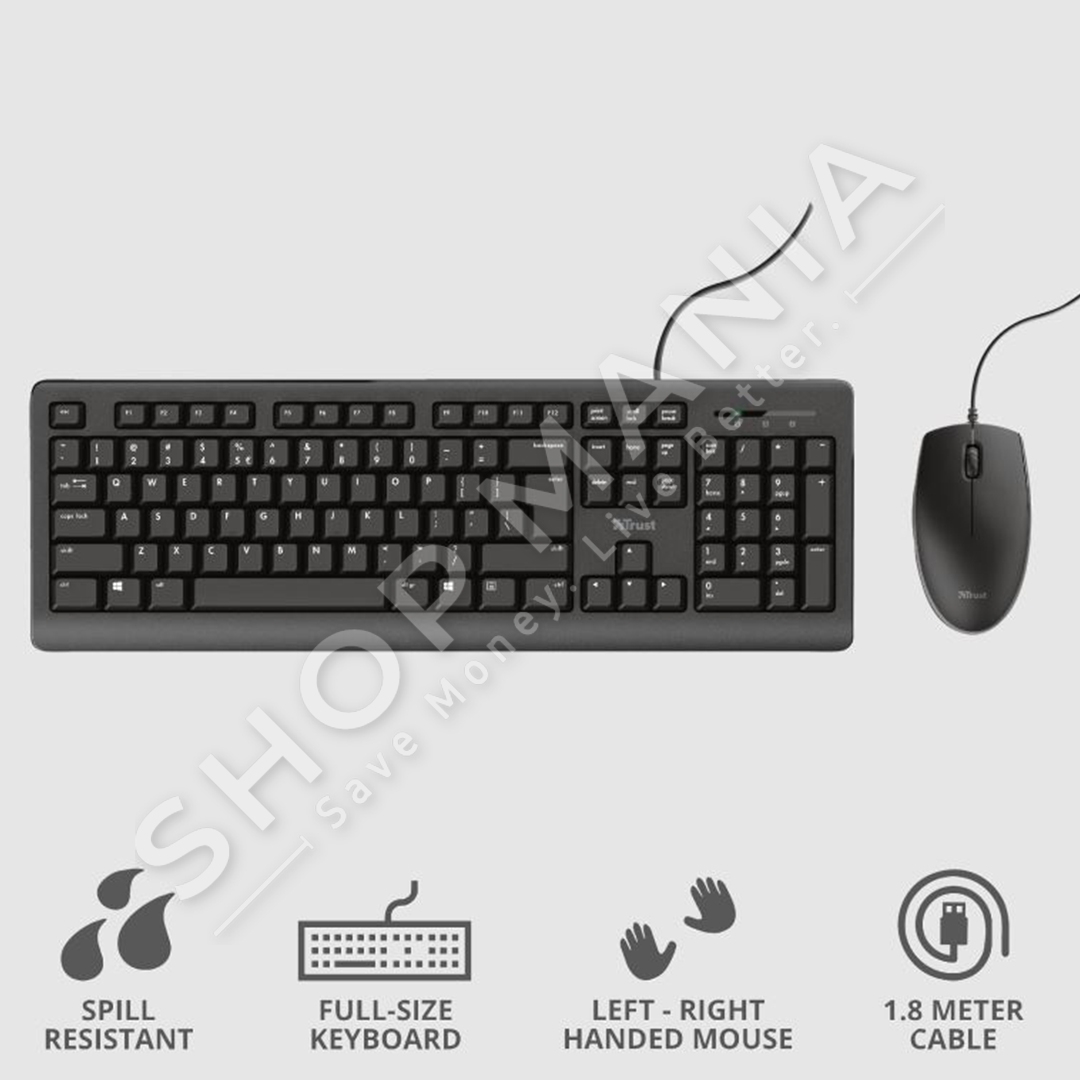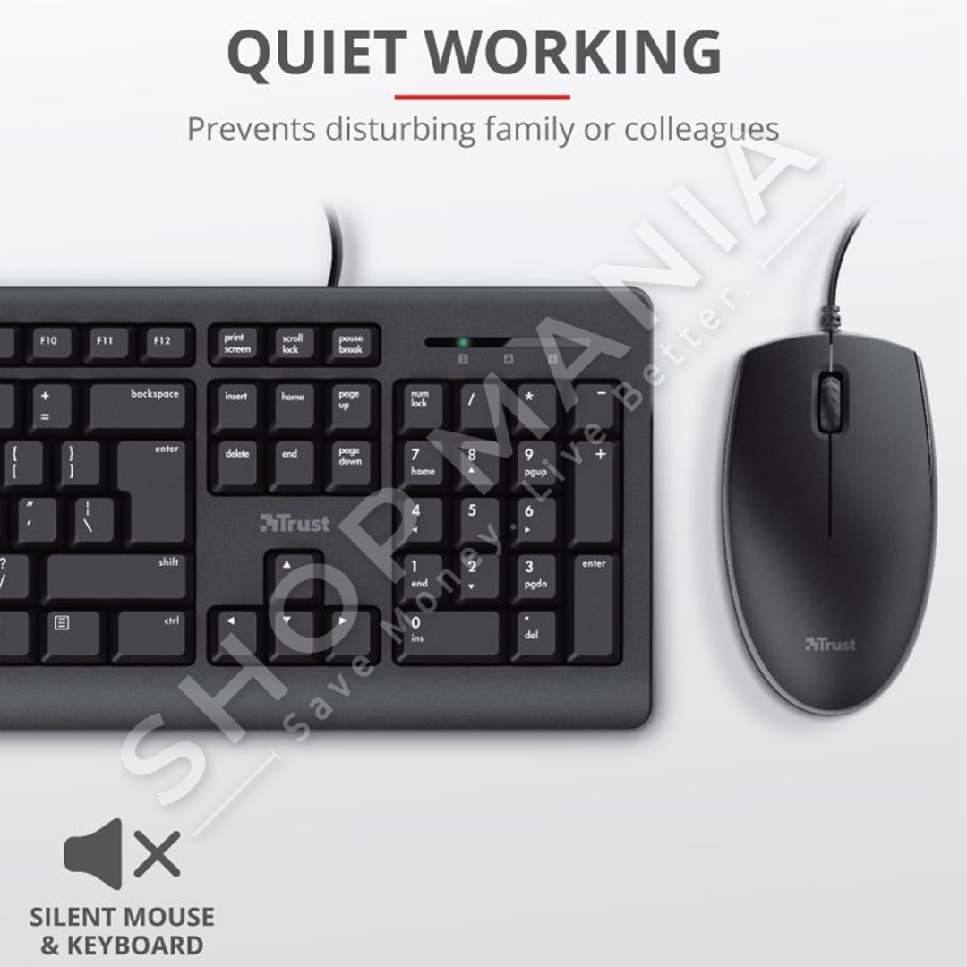 Tastiere dhe mouse me kabell dizenjuar per te qene te rehatshem dhe shume produktiv. Nderkohe qe ju jeni duke punuar ne kompjuter nuk do te degjoni asnje zhurme nga mouse apo tastiera. Tastiera eshte rezistente ndaj ujit dhe me butona ne madhesi te plote.