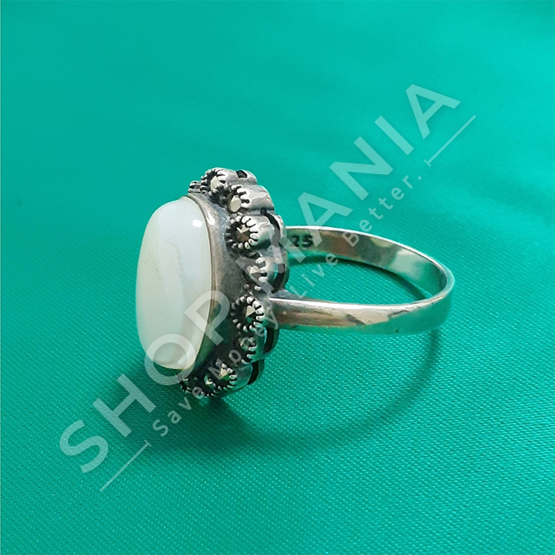Unaze argjendi me gur zirkoni ne ngjyre te bardhe ne forme ovale.