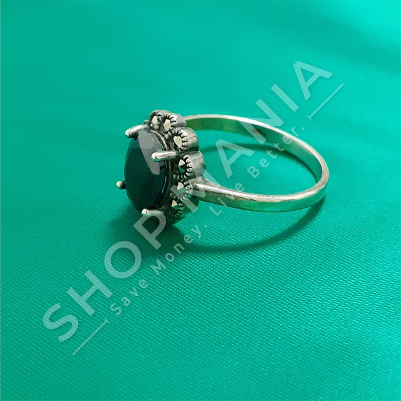 Unaze argjendi me gur zirkoni ne ngjyre te zeze.