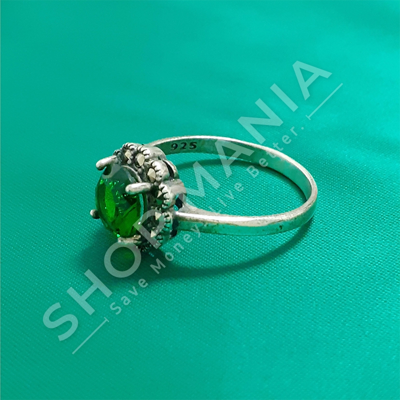 Unaze argjendi me gur zirkoni ne ngjyre jeshile.