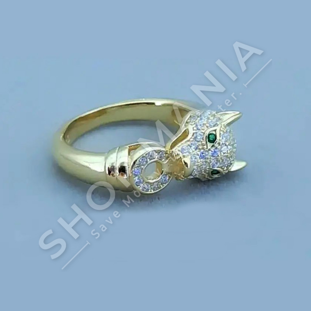 Unaze argjendi (serm) ngjyre gold me dizajn ujk dhe gur zirkoni.