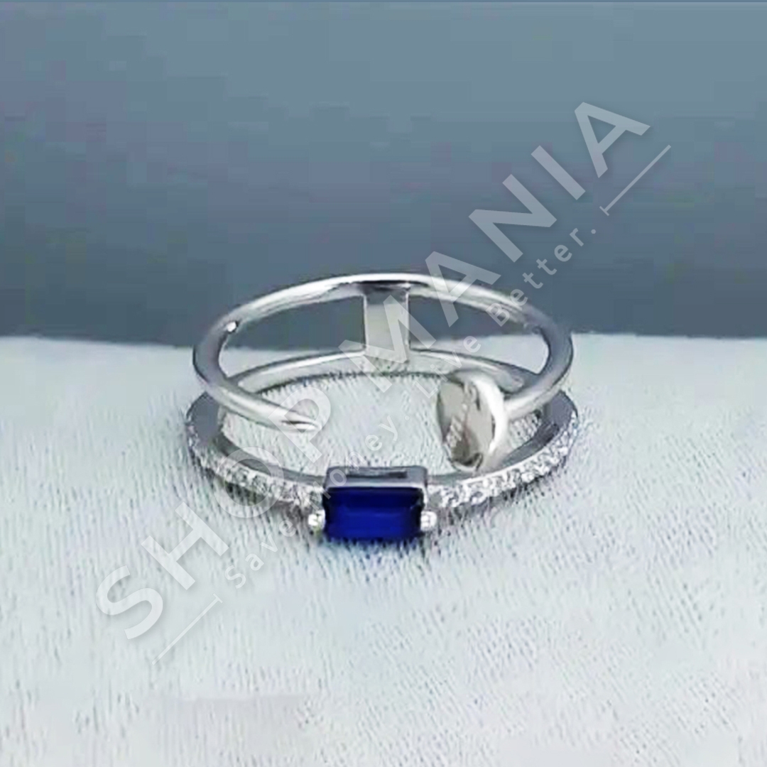 Unaze argjendi (serm) me gur te vegjel zirkoni dhe nje gur te madh ngjyre blu.