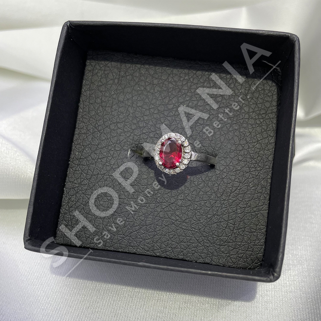 UNAZE ARGJEND ME GUR ZIRKONI TE KUQ "FORME OVALE" - KL-208