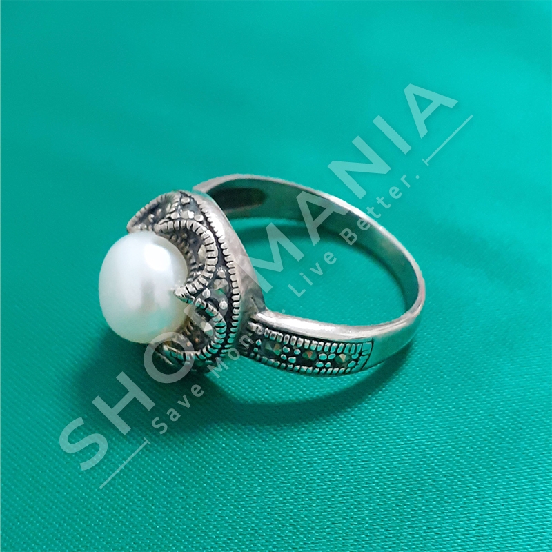 Unaze argjendi me detaje te vecanta dhe gur zirkoni ne forme perle.