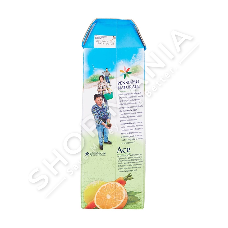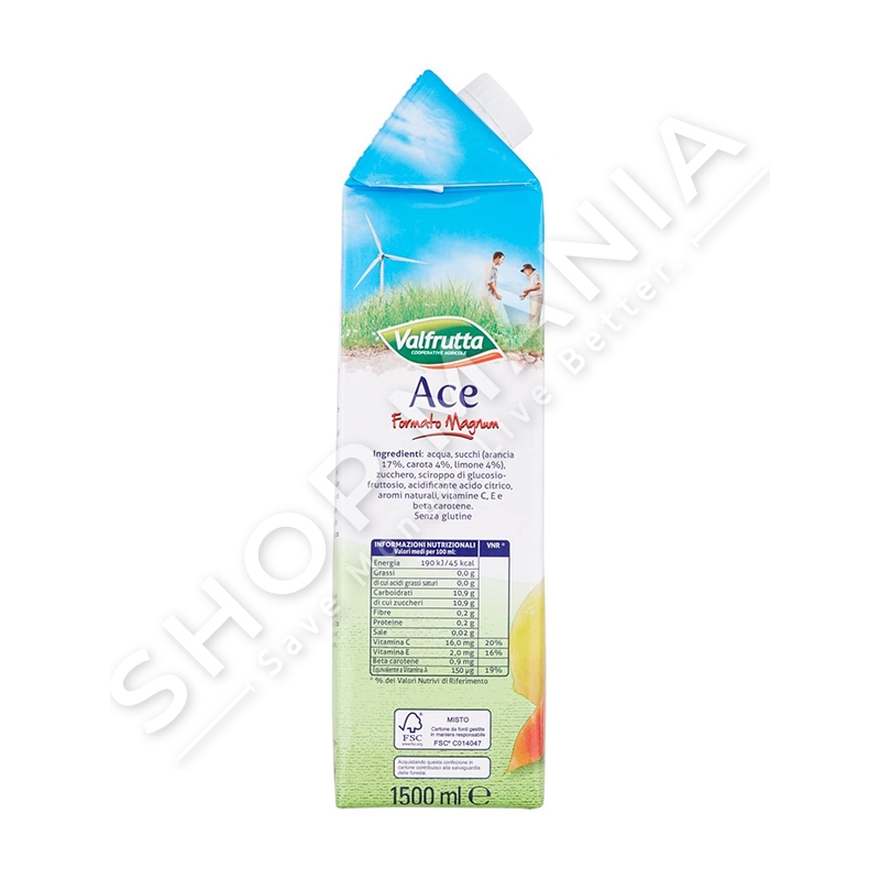 ACE Valfrutta ka nje arome unike. Kombinon aromen e forte te agrumeve dhe shijen e embel te karrotave. E gjithe freskia e natyres ne nje produkt te shijshem, burim i vitaminave A, C
