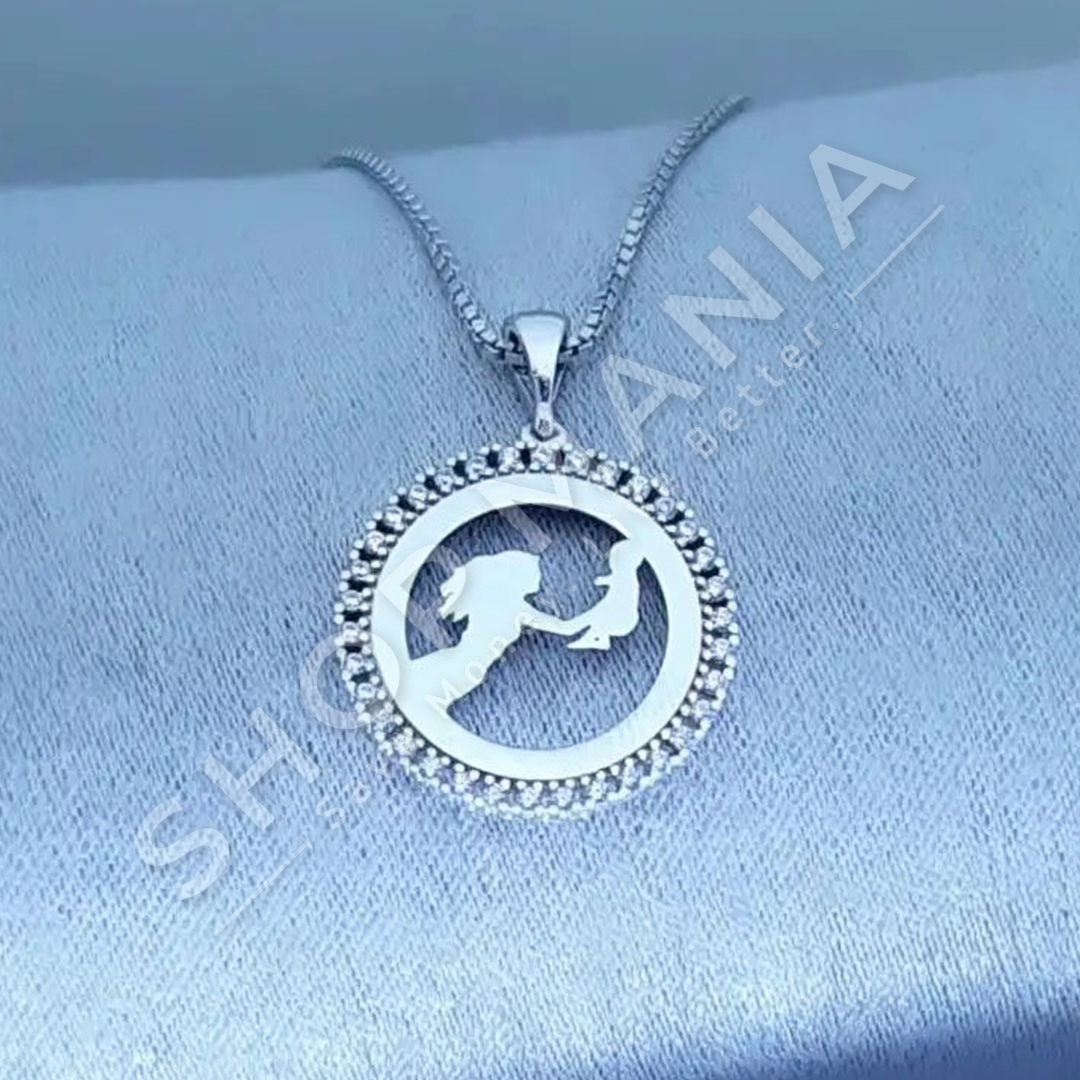 Varese argjendi me gur te vegjel zirkoni ne forme rrethore dhe dizajn te nenes me femijen.