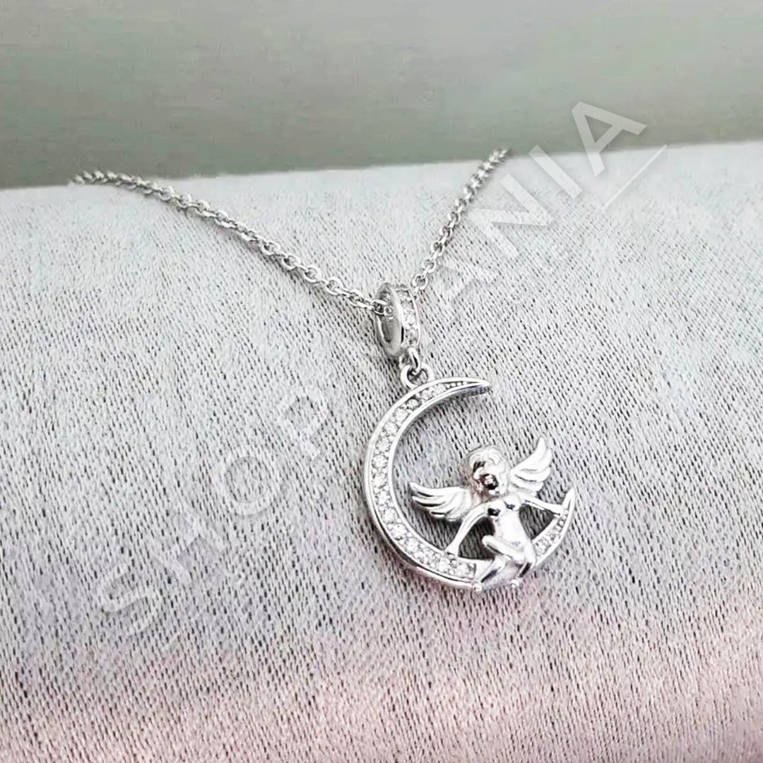 Varese argjendi (Serm) me gur te vegjel zirkoni dhe dizajn hene dhe engjell.