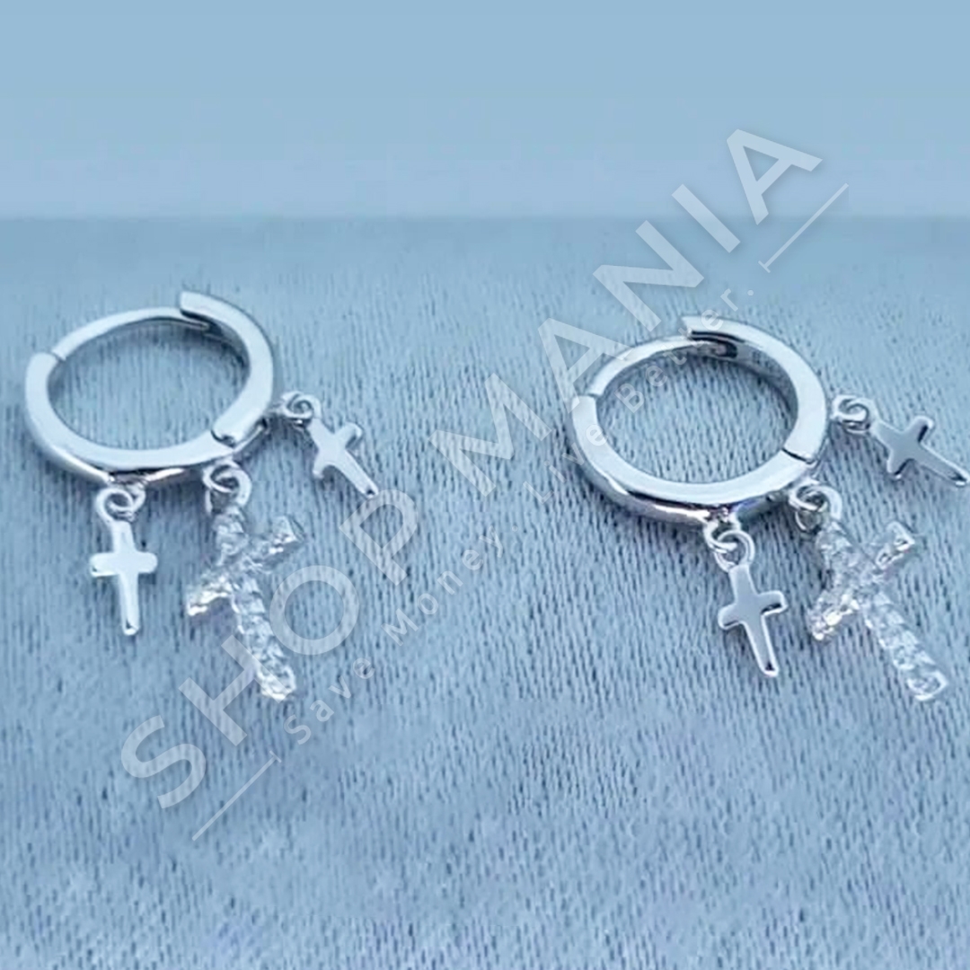 Vathe argjendi (serm) me gur te vegjel zirkoni me dizajn me 3 Kryqe.