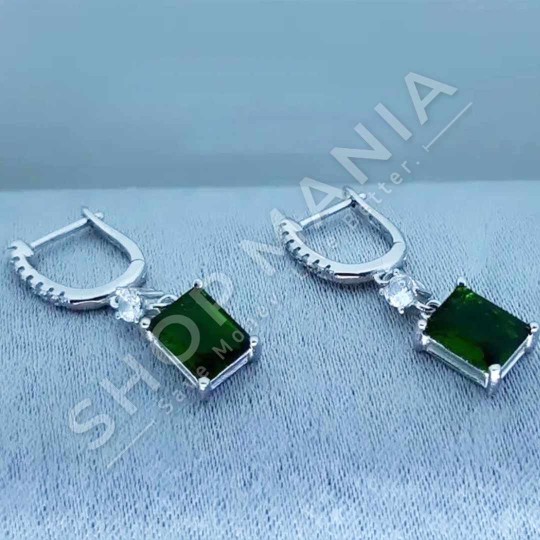 Vathe argjendi (serm) me gur te vegjel zirkoni dhe nje gur te madh ngjyre jeshil.