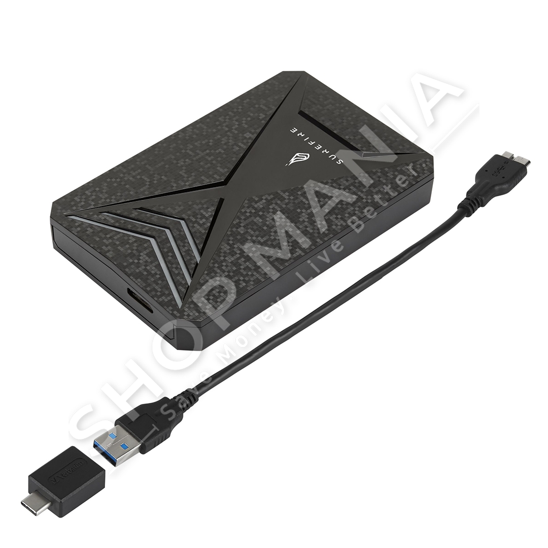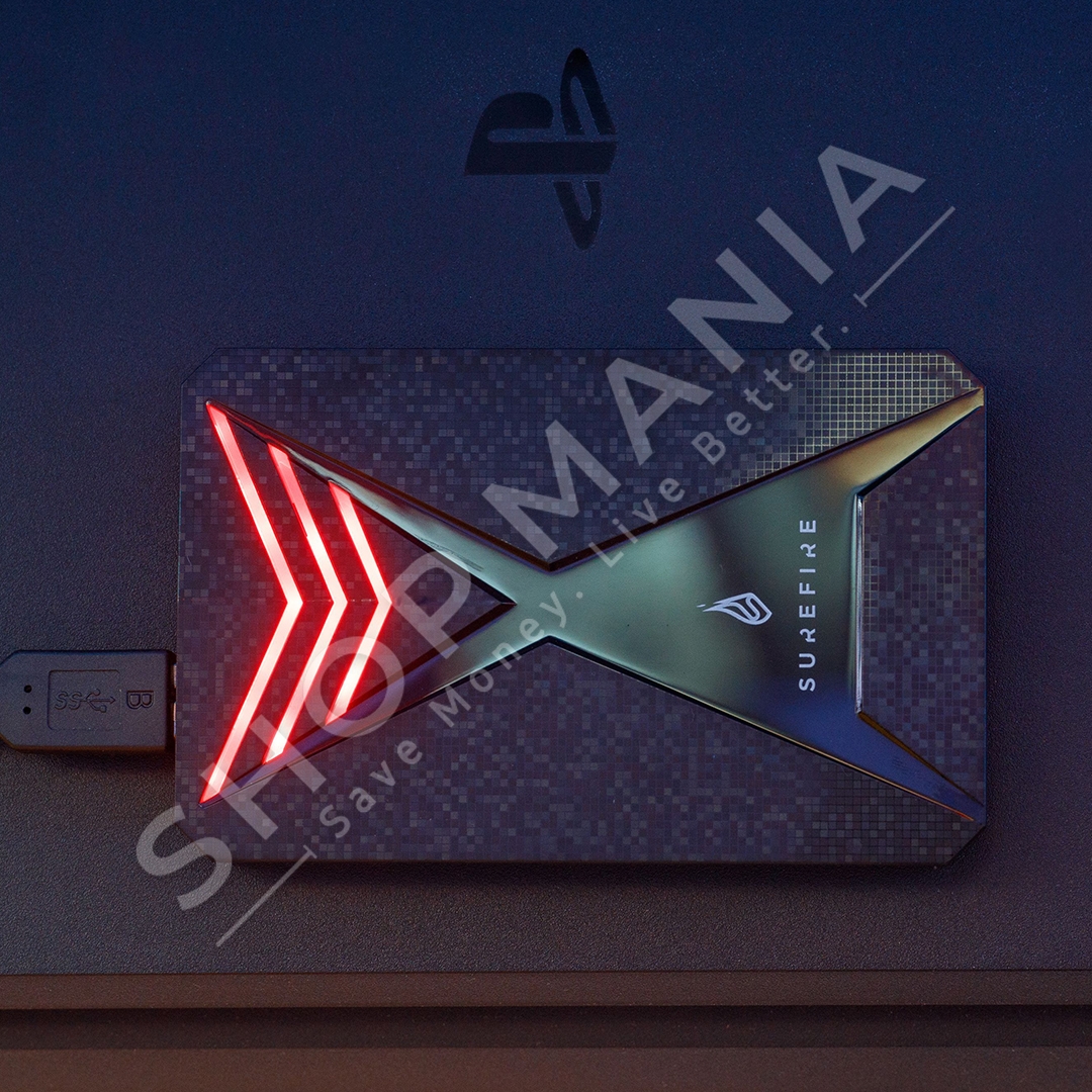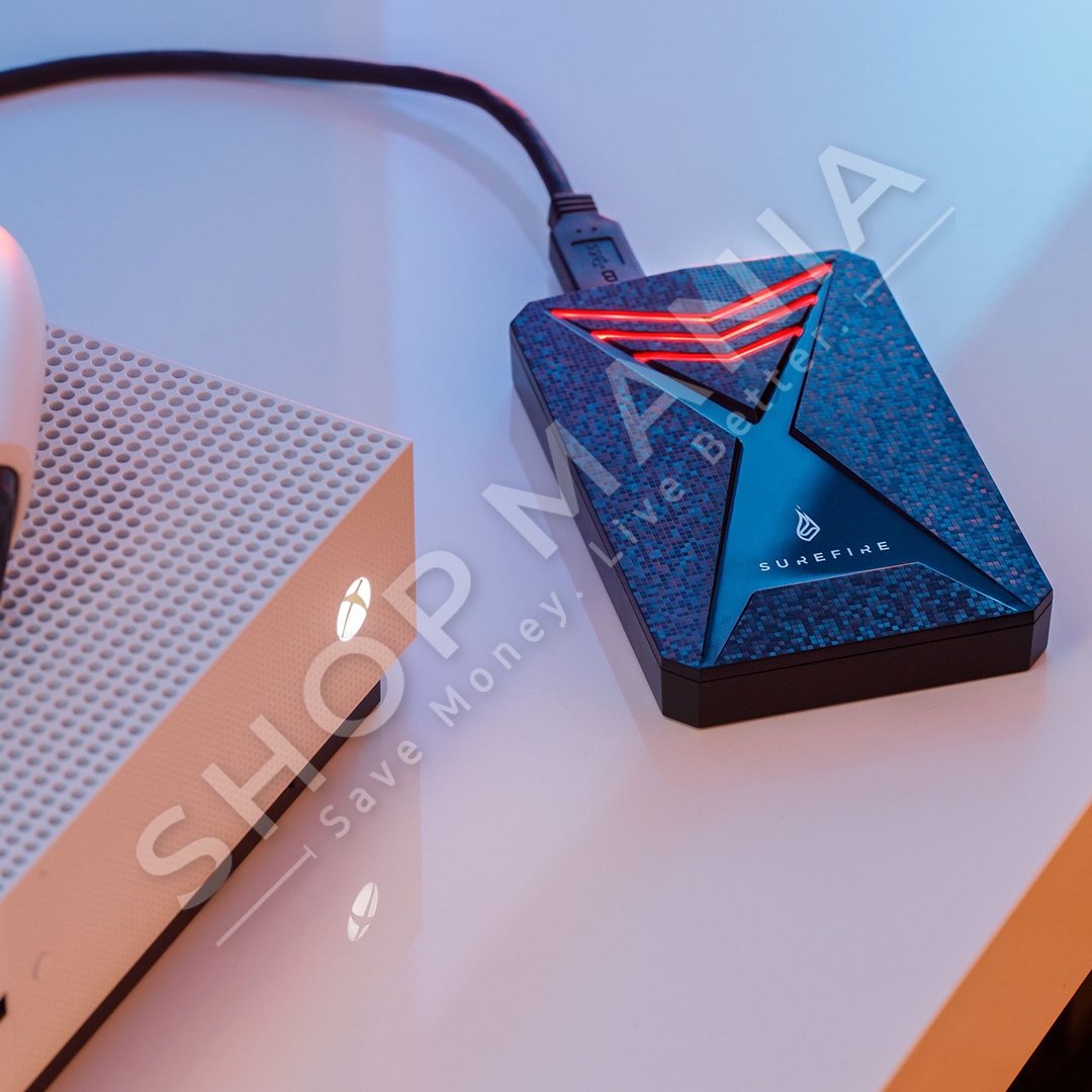 Me drita te theksuara LED me ngjyra te ndryshueshme RGB dhe nje dizajn te ndikuar nga tastierat me te fundit, hard drive Gaming SureFire ka shpejtesi te larte te transferimit te te dhenave, perfekte per ruajtjen e lojerave te fundit.