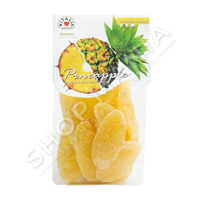 Ananasi thahet dhe sheqeroset ne impiante te vecanta, i prere ne feta