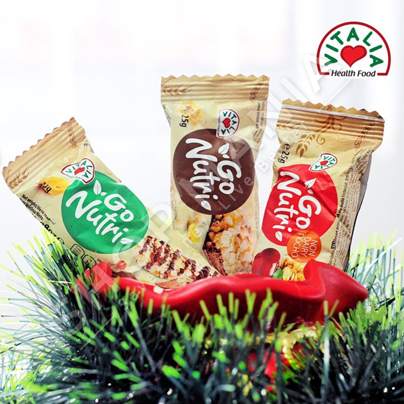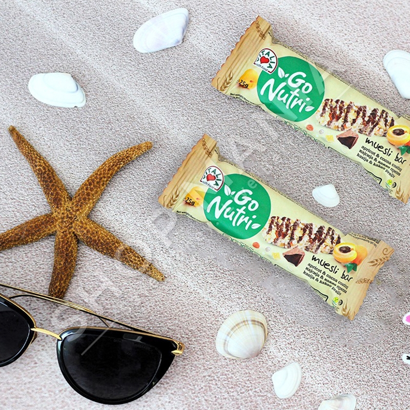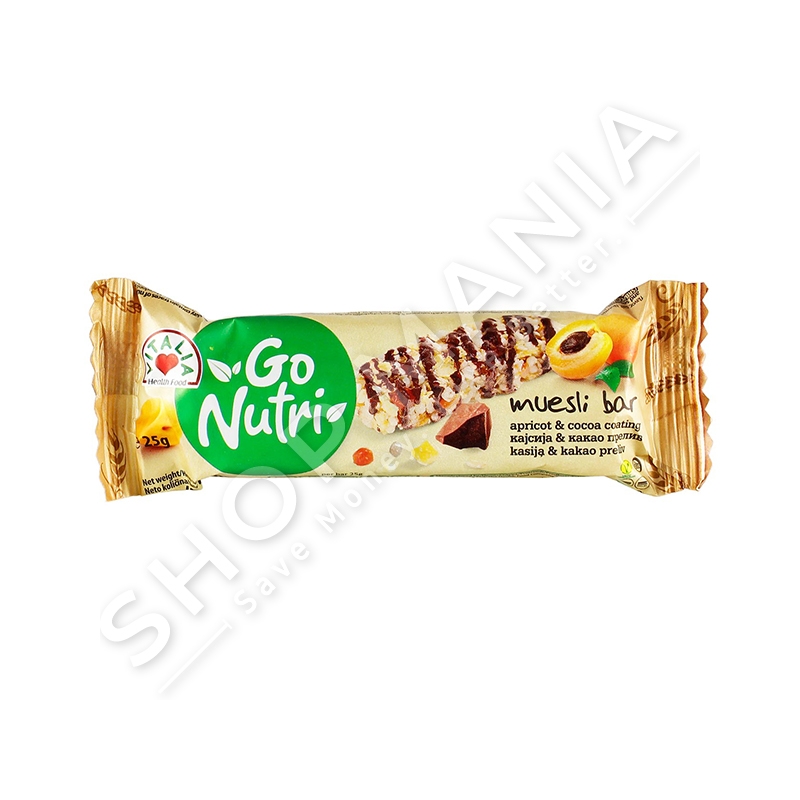 Go Nutri bar me kajsi dhe kakao eshte nje perzierje e 4 lloje dritherash dhe copezave te kajsise te mbuluara me kakao.