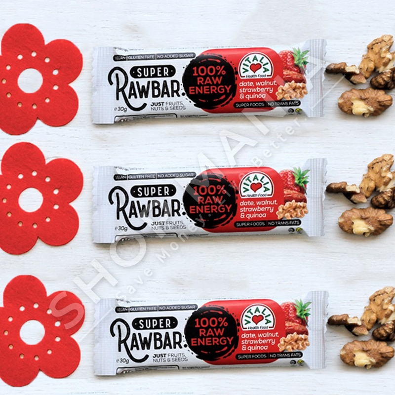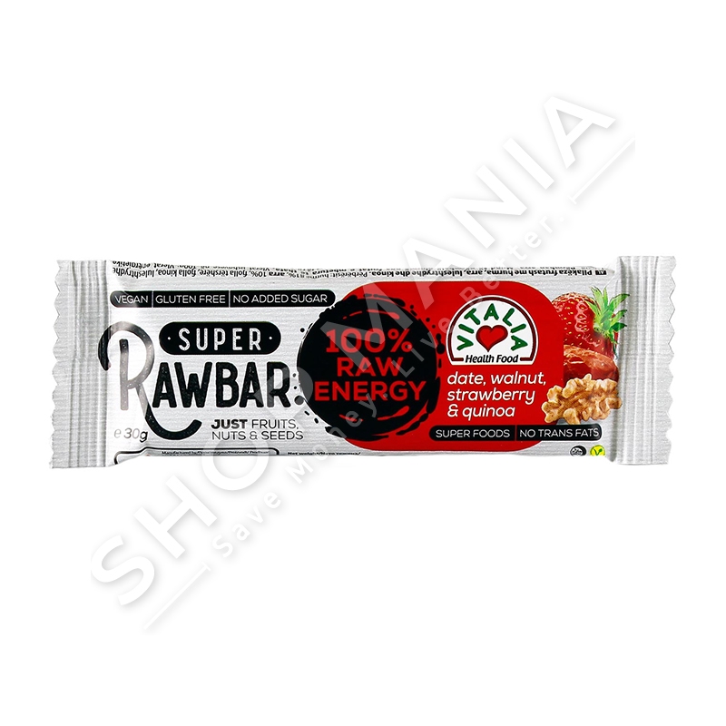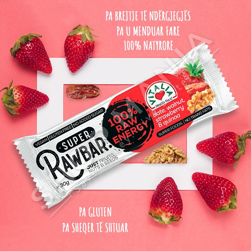 Cokollata RawBar me data, luleshtrydhe, arra dhe quinoia eshte cokollate me perberes te paperpunuar natyrale me cilesi te larte, te pasura me vitamina, minerale dhe antioksidante.