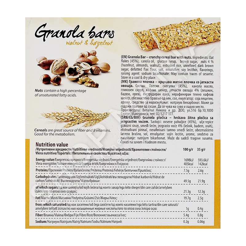 Granola bar eshte nje kombinim perfekt i dritherave, tersheres dhe arrave te zgjedhura te cilat embelsohen me sheqer kafe.