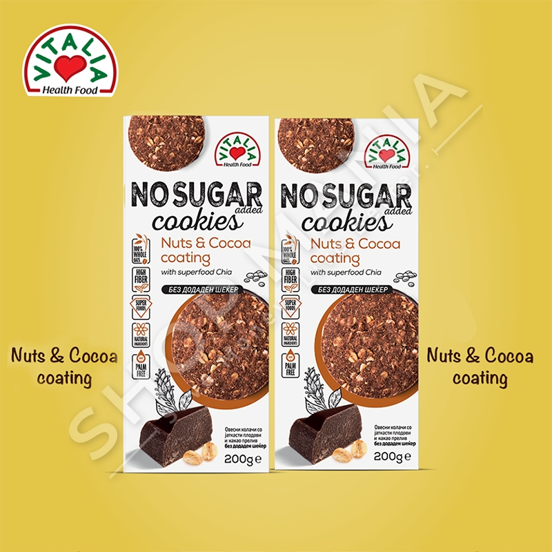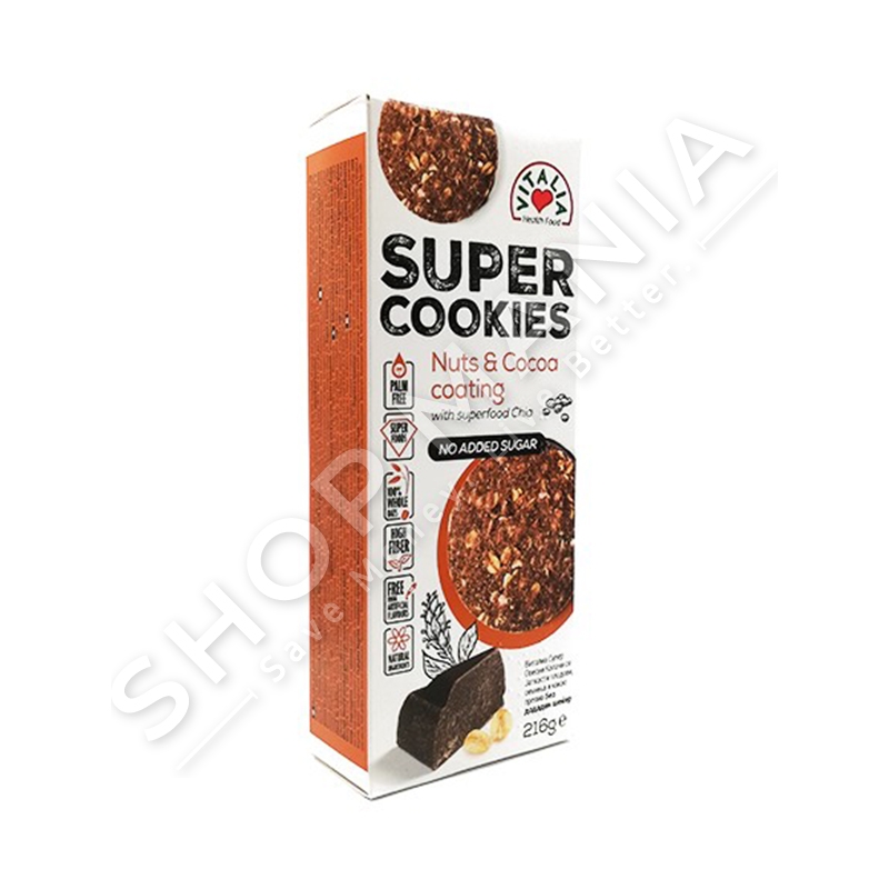 Super biskotat e markes Vitalia me arra, fara chia dhe cokollate te zeze kane shije natyrale dhe pergatiten sipas nje recete unike, pa sheqer te shtuar.